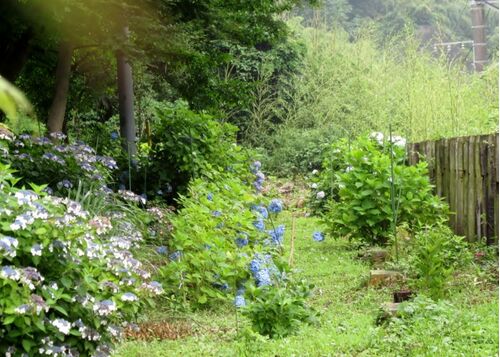 雨が上がりましたね。本日は午後1時半から鎌倉の世界遺産登録をめざす市民の会の総会がありました。 その会場である扇ガ谷の鎌倉風致保存会に向かう途中といいますか、敷地周辺のアジサイも雨上がりで鮮やかでした。右手の柵の向こうにはJR横須賀線の線路が…