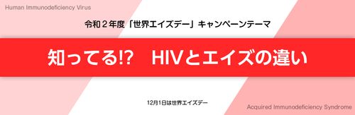 2020年世界エイズデー(12月1日)を中心にした国内啓発キャンペーンのテーマは『知ってる!? HIVとエイズの違い』です。何をいまさら・・・と思われる方もいるかもしれません。 ただし、じゃあ、知ってる?と尋ねると、え~と、何だったかな?と答えにつまっ…