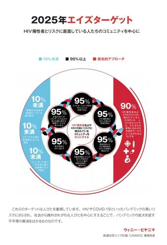 2025年を目標達成年とする新たなエイズターゲットについて、国連合同エイズ計画(UNAIDS)のウィニー・ビヤニマ事務局長は次のように語っています。 『これらのターゲットは人びとを重視しています。HIVやCOVID-19といったパンデミックの高いリスクにさらさ…